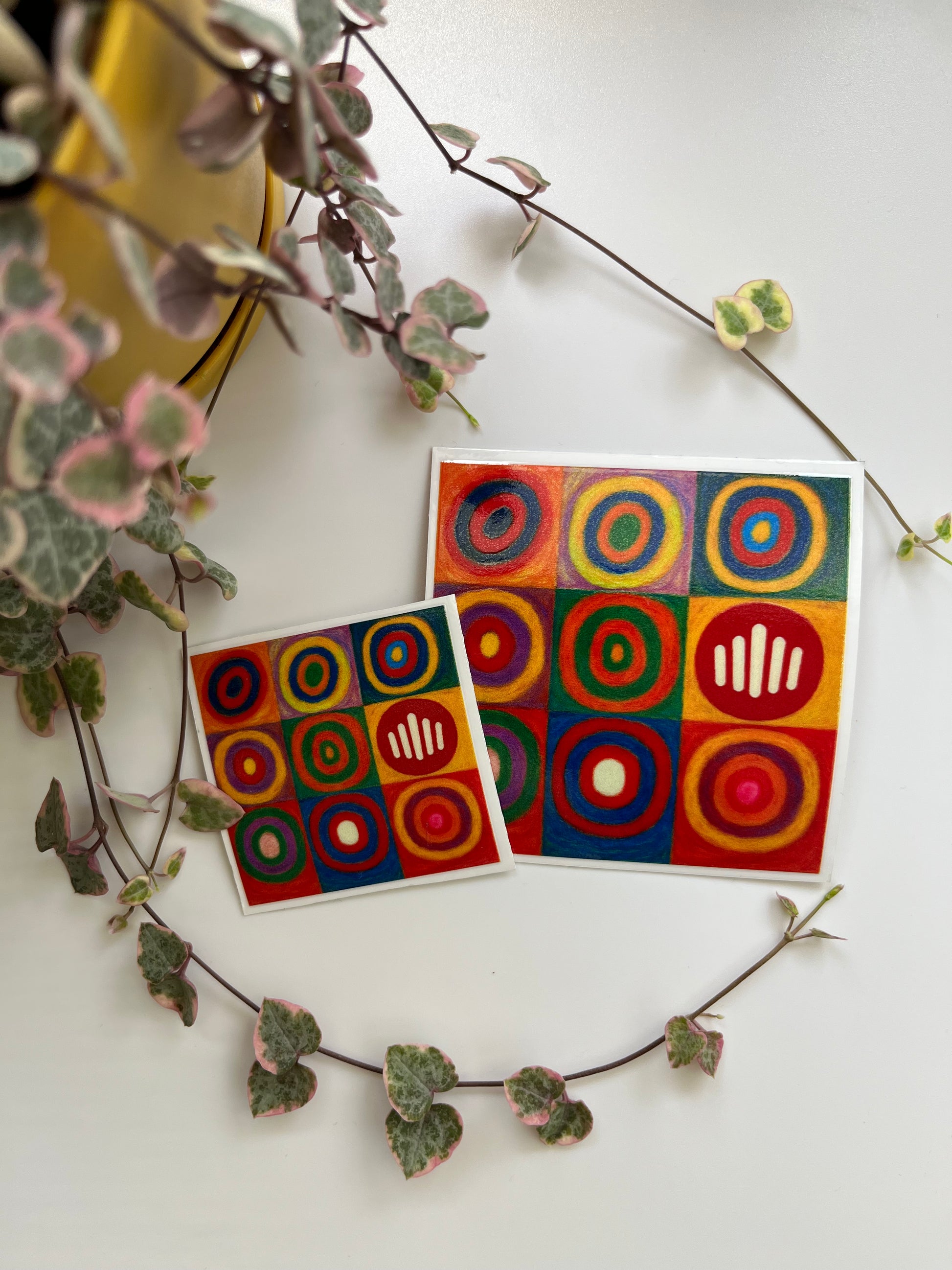 Concentric colors dance around a bold redbud core—Erguvan makes its mark at the heart of Kandinsky’s iconic pattern.